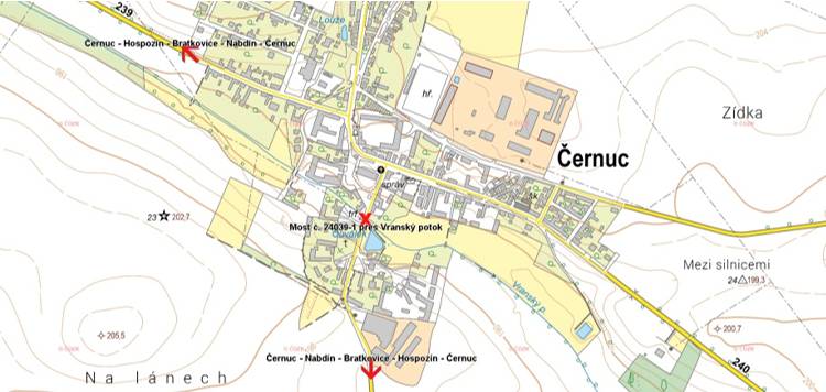 V případě zaplavení či ohrožení stability mostu přes Vranský potok (most č. 24039-1) v Černuci, kdy je znemožněn průjezd ze severní části obce do jižní, vede objízdná trasa spojující obě části přes Hospozín, Bratkovice a Nabdín (či obráceně, pokud je nutné se dostat z jižní části do severní).